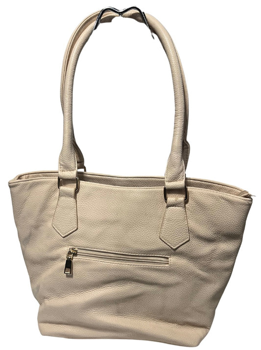 Cream/Brown Ostrich Embossed Pleather Handbag