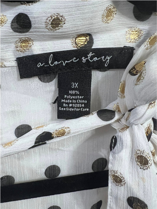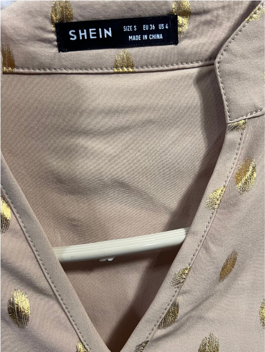 Long Sleeve Cream and Gold Polka-Dot Shirt or Mini Dress Small